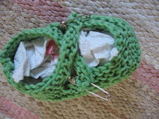 Sitähän minäkin, ei nämä vauvan tossua muistuta kun vaan joltain kantilta... Ja jotenkin epäilyttää tuo kokokin. Onko vastasyntyneen jalkaterä niin iso, että täyttää saman, minkä kaksi kevyesti rutistettua paperitolloa? Ja miksi nuo tuossa ohjeen kuvassa pysyy pystyssä ilman tukea?